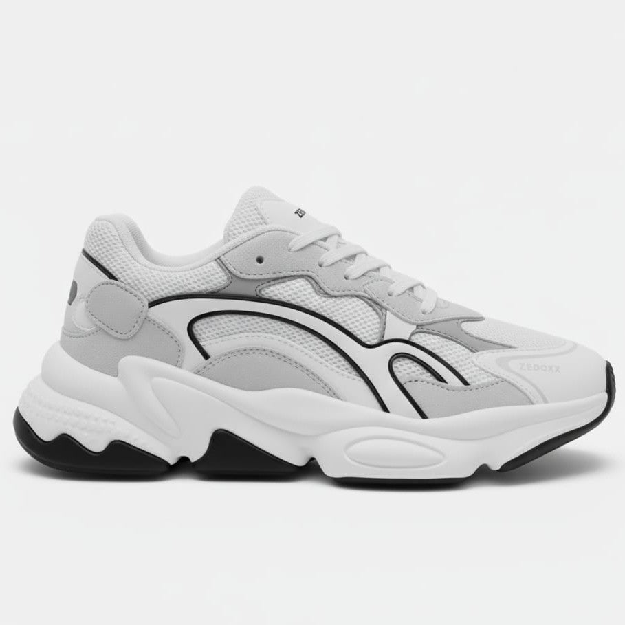 Step into the future of streetwear with the ZEDOXX Velocity X1. Designed with a bold, futuristic silhouette, these sneakers combine premium mesh breathability, layered panel detailing, and lightweight cushioning to deliver comfort that lasts all day. The crisp white base with sleek black accents makes them a versatile choice for both performance and everyday street style. Built with an ultra-lightweight feel, a durable outsole that provides reliable grip, and a breathable upper for lasting freshness, the Velocity X1 reflects minimal yet futuristic ZEDOXX branding that sets it apart.